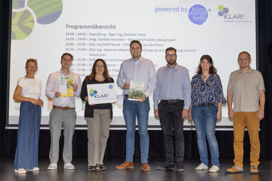 Nach der Begrüßung durch Moderator KLAR!-Manager Alexander Wimmer und dem “Hausherrn” Bürgermeister Ing. Dominic Litzka führten spannende Fachvorträge durch das Thema: Mag. Günther Nowotny vom ÖWAV erklärte, was unter (Problem-)Neophyten zu verstehen ist, Dipl.-Ing. Edith Novak berichtete aus der Pflege-Praxis der Betriebsgesellschaft Marchfeldkanal, während Dipl.-Ing. Johannes Mayerhofer den neuen Neophyten-Leitfaden des Landes NÖ vorstellte. Danach folgten Beiträge von DI Manuel Denner zur praktischen Bekämpfung des Götterbaums und von DI Dr. Angelika Stüger-Hopfgartner zu abfallwirtschaftlichen Rahmenbedingungen.